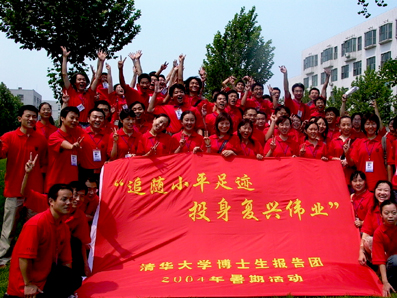 【新聞中心訊 記者 聿才】8月6日,“追隨小平足跡,投身復(fù)興偉業(yè)——清華大學(xué)博士生報(bào)告團(tuán)2004暑期系列活動(dòng)”正式啟動(dòng)。本次活動(dòng)歷時(shí)約10天,來(lái)自清華大學(xué)14個(gè)院系的70余名博碩士研究生組成7個(gè)團(tuán)隊(duì),將通過(guò)對(duì)鄧小平同志生活戰(zhàn)斗過(guò)的法國(guó)及國(guó)內(nèi)六個(gè)省市地區(qū)的參觀(guān)、訪(fǎng)問(wèn)、考察和科技服務(wù),追憶小平同志革命生涯,在緬懷革命前輩光輝一生的同時(shí),學(xué)習(xí)小平同志舉世欽仰的思想精神風(fēng)貌及其人格力量,堅(jiān)定報(bào)國(guó)之心,樹(shù)立投身社會(huì)主義祖國(guó)偉大復(fù)興壯麗事業(yè)的遠(yuǎn)大理想。