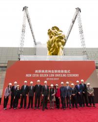 美高梅中國控股有限公司聯席董事長及執行董事何超瓊女士與一眾管理層成員,今天於美獅美高梅選址上主持金獅像揭幕儀式。何超瓊女士表示:「鑄造這座金獅像充分展示了我們對美獅美高梅的熱情及決心,同時亦彰顯了其重要性。感謝過去三年間一班團隊的悉心設計及策劃,為我們帶來此獨一無二的金獅像。作為紮根本澳之企業,美獅美高梅與澳門美高梅今後將展現自身的獨特魅力,並相互發揮優勢,呈獻更多非博彩元素,推動經濟適度多元化以推進澳門發展成為更具吸引力的世界旅遊休閒中心。」