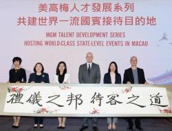 因應澳門建設成為「世界旅遊休閒中心」及粵港澳大灣區的旅遊教育培訓基地,美高梅日前舉辦「共建世界一流國賓接待目的地——國家級別宴會」系列講座,邀請到前禮賓公關外事辦公室主任馮少榮先生,以及釣魚臺國賓館人事處副科長李雪女士主講,與共150位團隊成員及來自澳門大學、理工學院、旅遊學院及科技大學四間大專院校的教職員,分享有關籌辦國家級別宴會和國際禮賓事務的專業知識,以提升澳門接待國內外貴賓的能力。