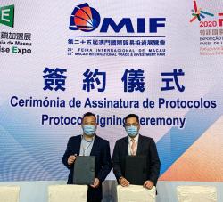 在「第二十五屆澳門國際貿易投資展覽會」上,美高梅與濠概醫療用品有限公司簽署採購口罩備忘錄,由美高梅採購及供應服務副總裁鄭忠勇以及濠概醫療用品有限公司董事長陳子明代表簽署