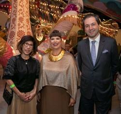 美高梅文化藝術高級副總裁郭惠心、世界知名葡萄牙藝術家瓊安娜?瓦思康絲勒(Joana Vasconcelos)與葡萄牙駐澳門及香港總領事雷德生(Alexandre Leit?o)一同站於《八面靈龍》前留影,祝賀瓊安娜?瓦思康絲勒個人展覽取得成功。